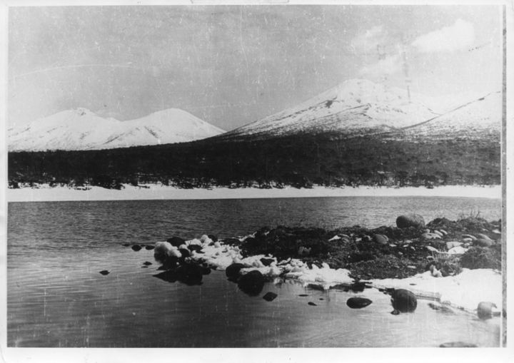 択捉 留別村 問保~入節中間より望む単冠山