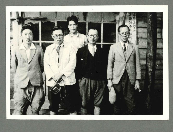 北海道庁千島調査所 道路調査員詰所前での記念撮影