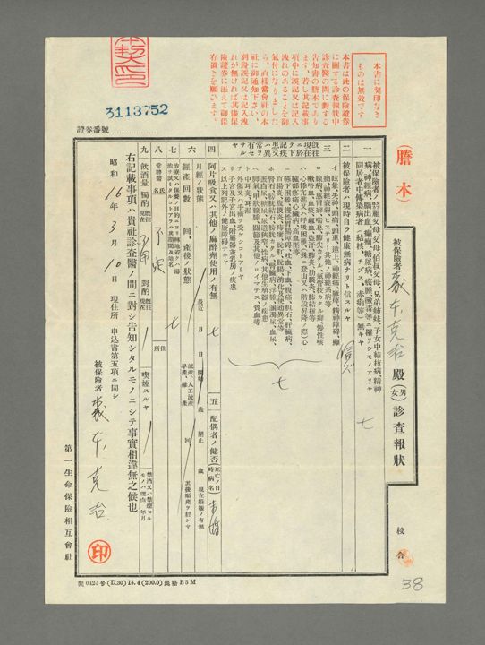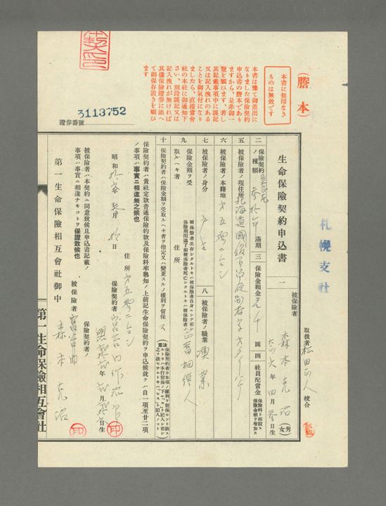 生命保険契約申込書(謄本)