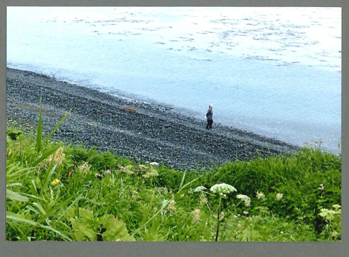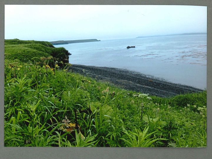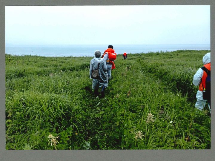 志発島の草原から海を眺める