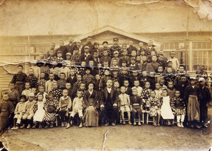 3.多楽島_尋常小学校で先生と生徒で記念撮影