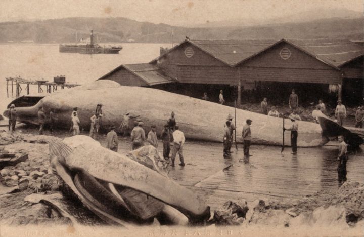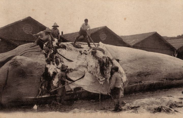 2.色丹島_斜古丹捕鯨場で解体処理する作業風景