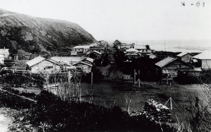 43.択捉島_別飛の全景(択捉水産会社より散布山を望む)