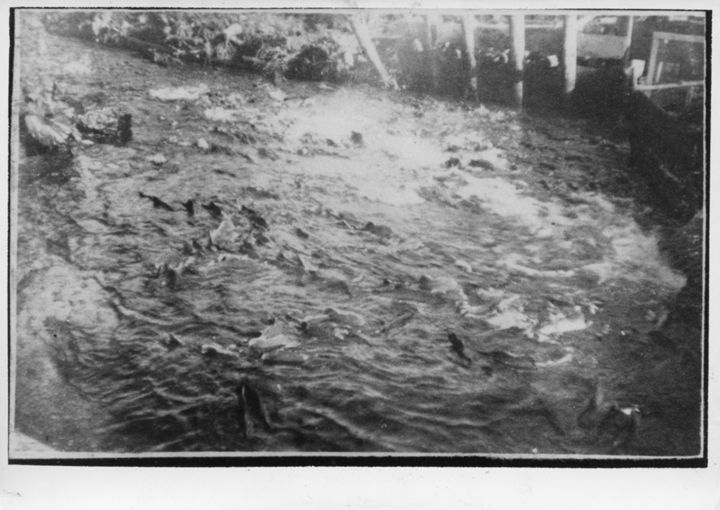 留別川を遡上する鮭の群れ