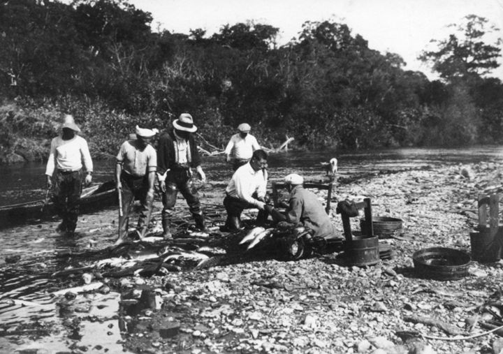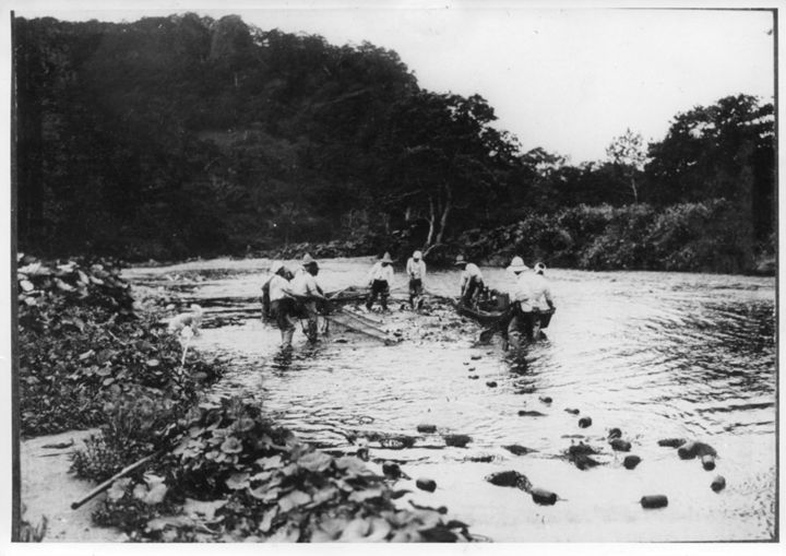 川での漁の様子